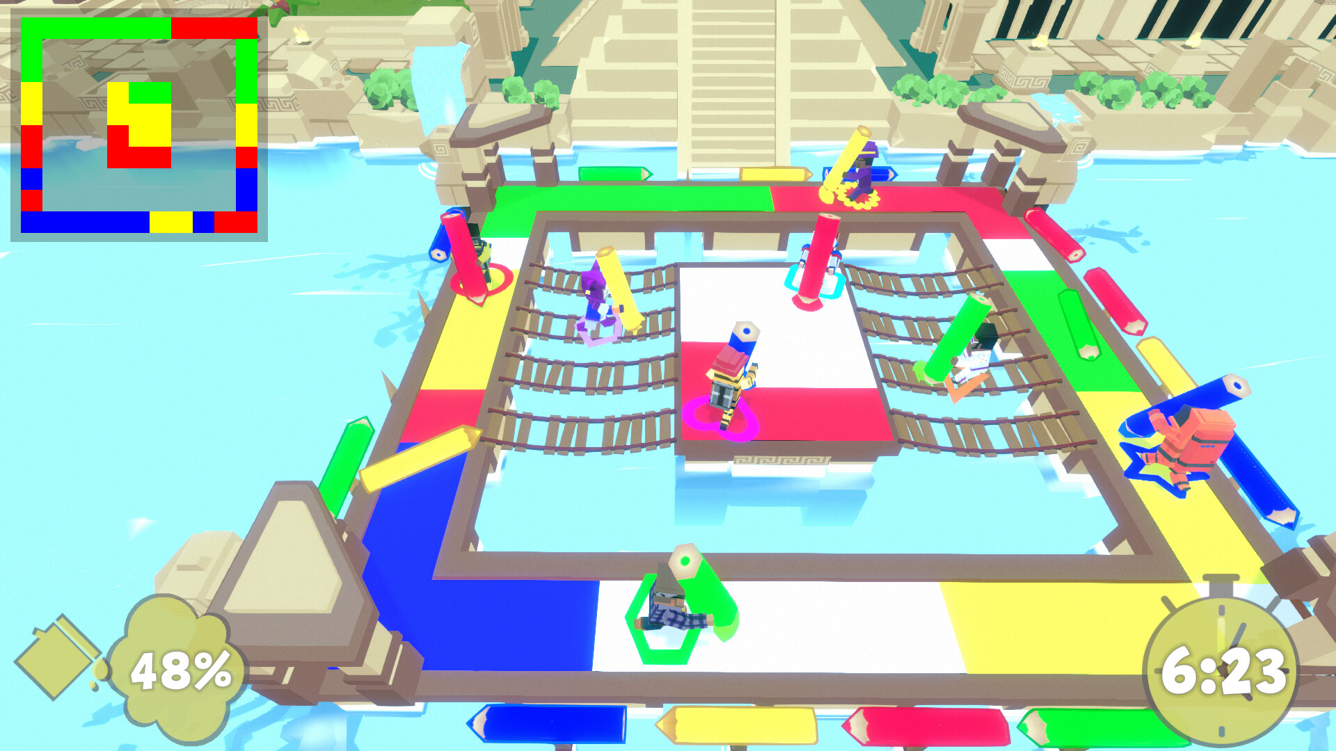 Пол — это ваш холст, но с друзьями всегда лучше! Соревнуйтесь на время с восемью игроками по сети — или откройте для себя следующую игру для вечеринки благодаря локальному мультиплееру. Вместе с друзьями создайте следующее великое произведение искусства, работая над уникальными шедеврами в новых, сумасшедших местах — только будьте осторожны, чтобы не наступить друг другу на пятки. Завершить каждую картину сложнее, чем кажется…