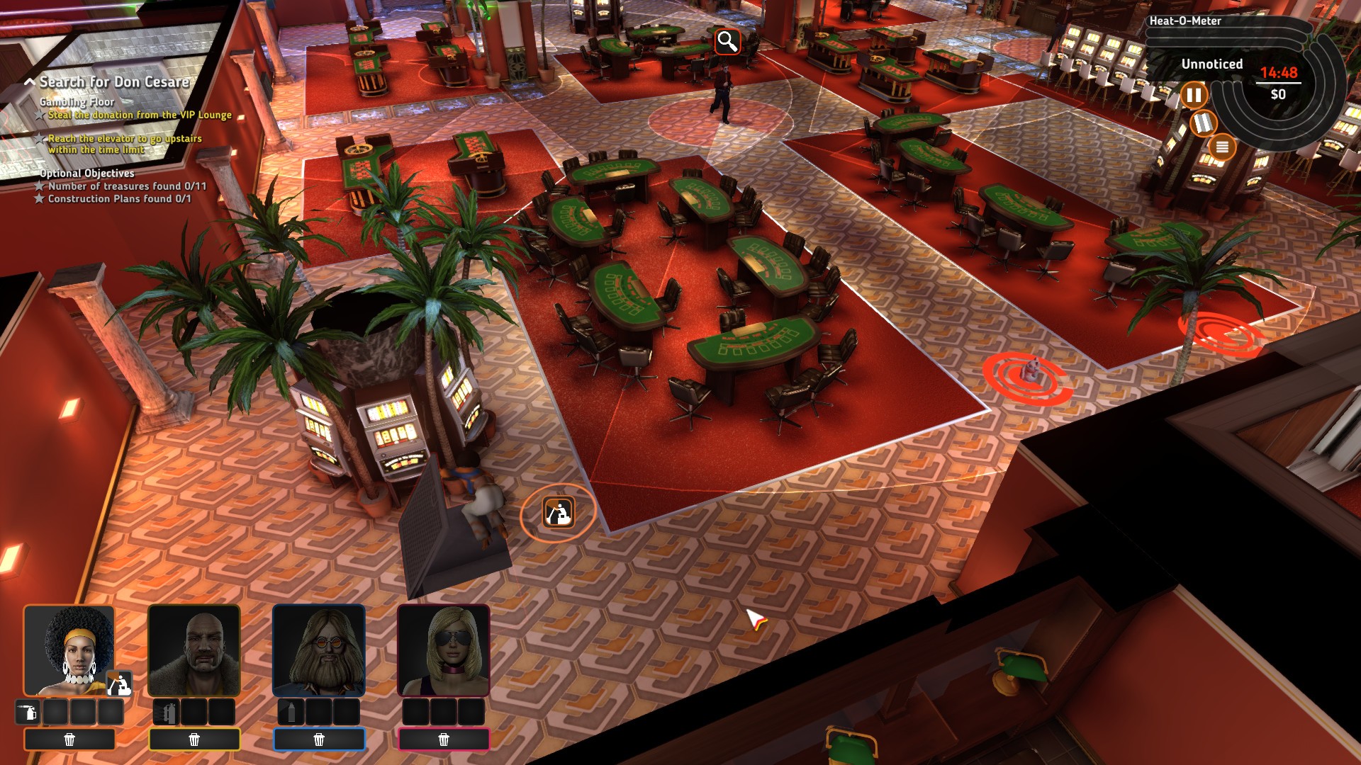 Отличная игра — стиль, стелс и стратегия. Рад, что нашел ее и начал заново. В первый раз я сыграл только пару уровней и застрял. Было очень весело, и я был вынужден пройти весь путь. Миссии, основанные на времени, напрягают (пришлось искать подсказки, чтобы получить помощь на 2 уровне казино) и требуют постоянного сохранения, но быстрое сохранение и сохранение времени реализованы хорошо. Очень весело методично проходить через все ловушки и охранников с членами команды, которых вы выбираете для использования.