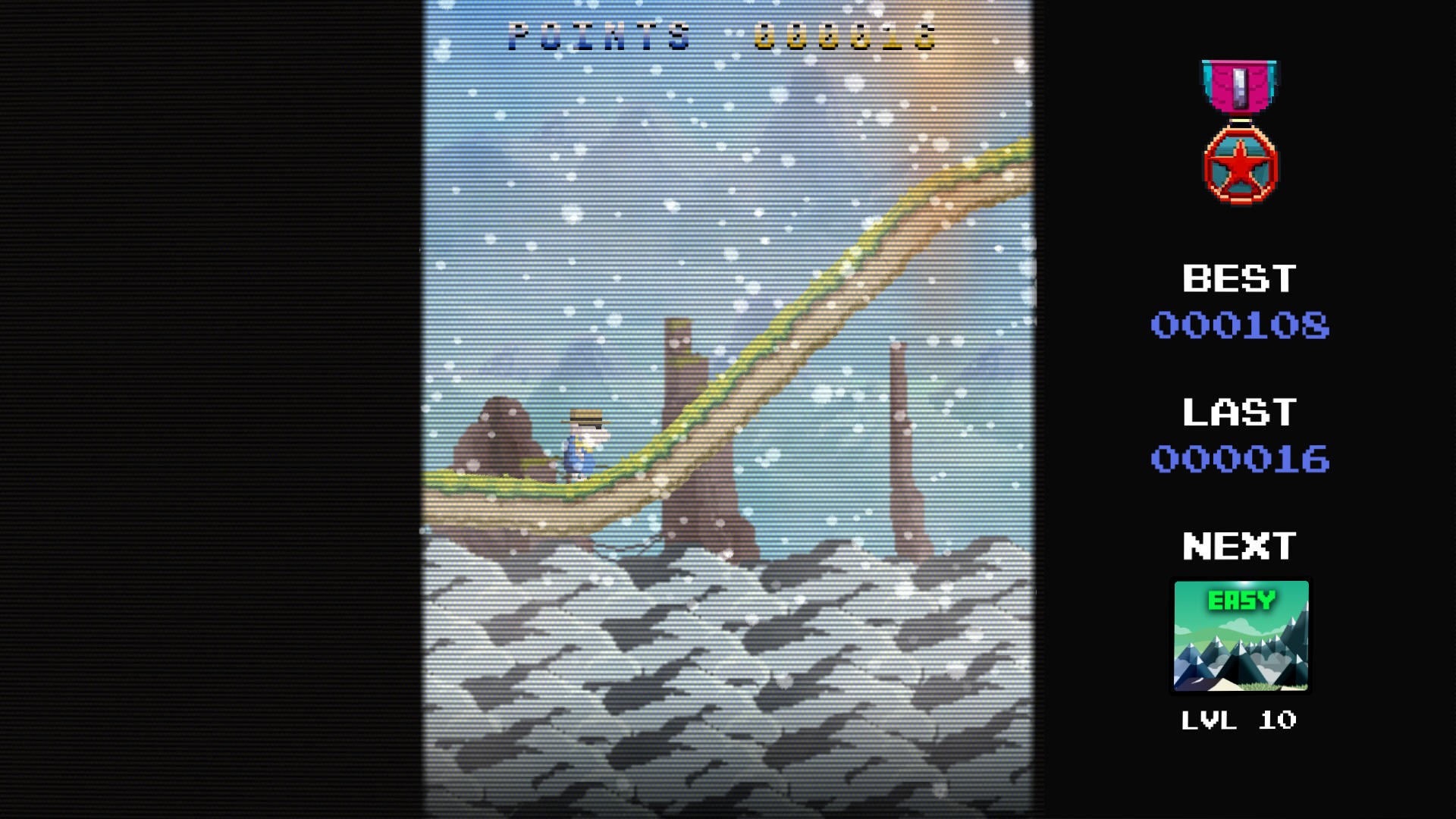 Эта игра очень сложная. То, как она работает, может вызвать сильное раздражение. Это может быть весело, если вы очень опытный игрок, и тогда это действительно хорошая игра. Только 6% игроков получили какие-либо достижения в этой игре, а 3% завершили все достижения, и, согласно игровому рейтингу, 250 баллов в легком режиме (самое легкое достижение) набрало в 4 раза меньше людей, чем 250 баллов в очень легком режиме, а 500 баллов в легком режиме (второе самое легкое достижение) набрало в 4 раза меньше людей больше 250 в простом режиме, что, вероятно, означает, что большинство игроков, потерпевших первоначальные неудачи, сдаются. На то, чтобы набрать 500 очков в easy, у меня ушло около часа игрового времени. Это также хорошо, если у вас есть 5/10/15 минут на игру и вы хотите поиграть быстро.
